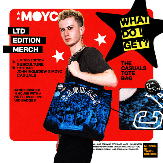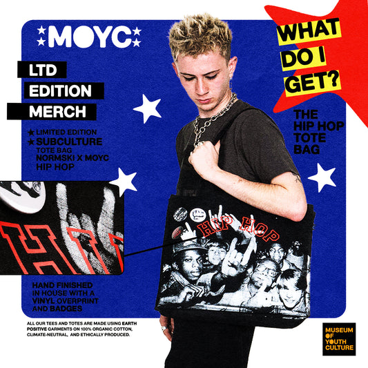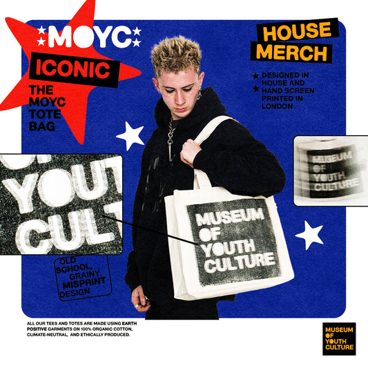 EVERY PIECE IS DESIGNED, DEVELOPED AND PRODUCED IN-HOUSE BY THE MUSEUM OF YOUTH CULTURE TEAM, IN COLLABORATION WITH DFT PRINTING STUDIO AND ARTISTS WE WORK WITH. ALL IN SOUTH LONDON A STONES THROW FROM OUR OFFICES.